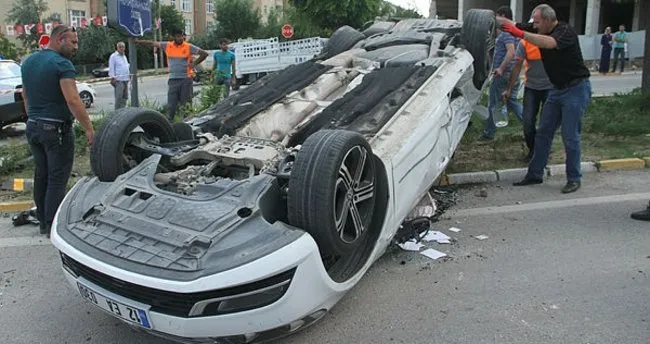 Araçlardan biri yol kenarındaki sulama kanalına ters bir şekilde düşerken, diğer araçlarda da maddi.